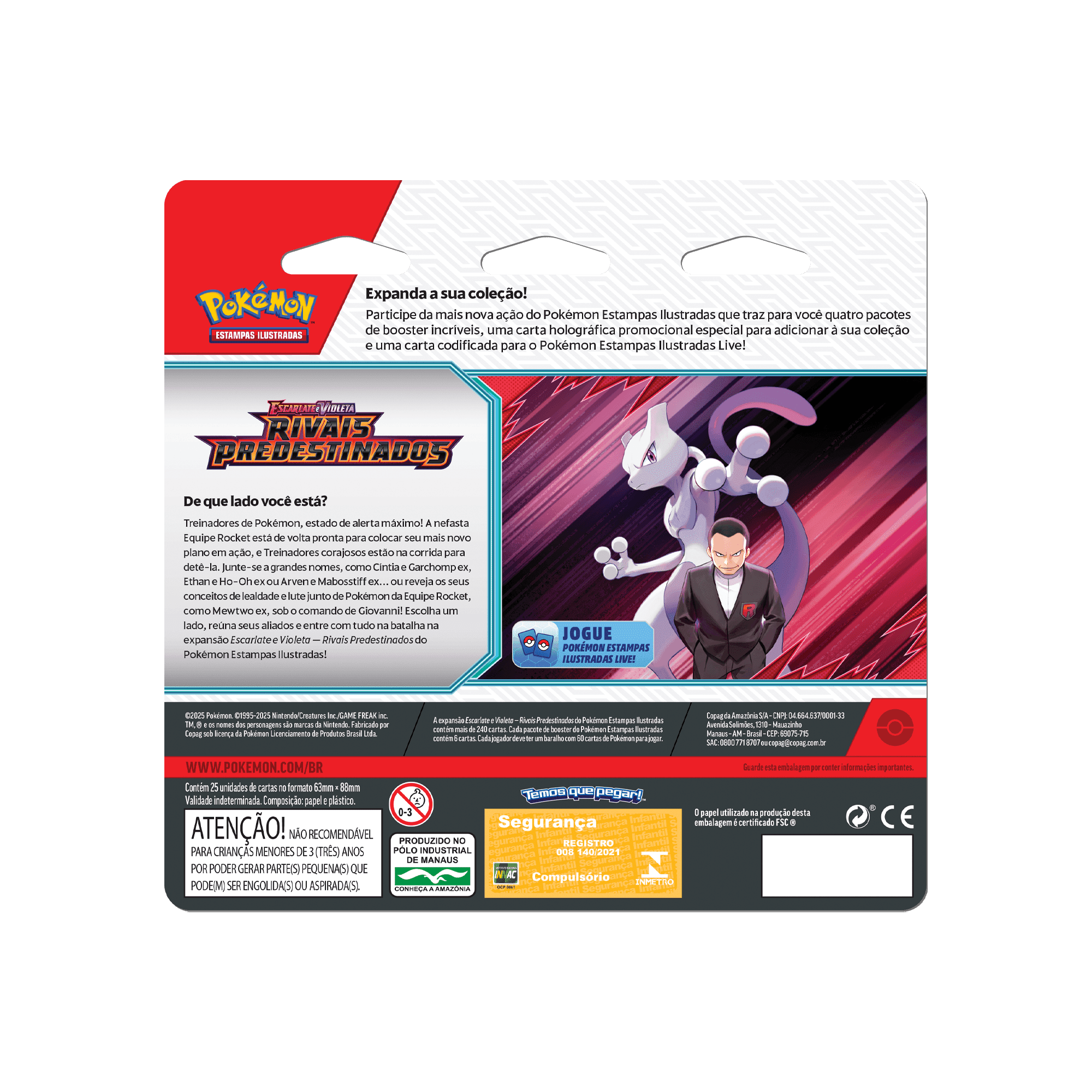 - Quatro boosters lacrados da série Rivais Predestinados para ampliar suas chances de encontrar cartas raras.