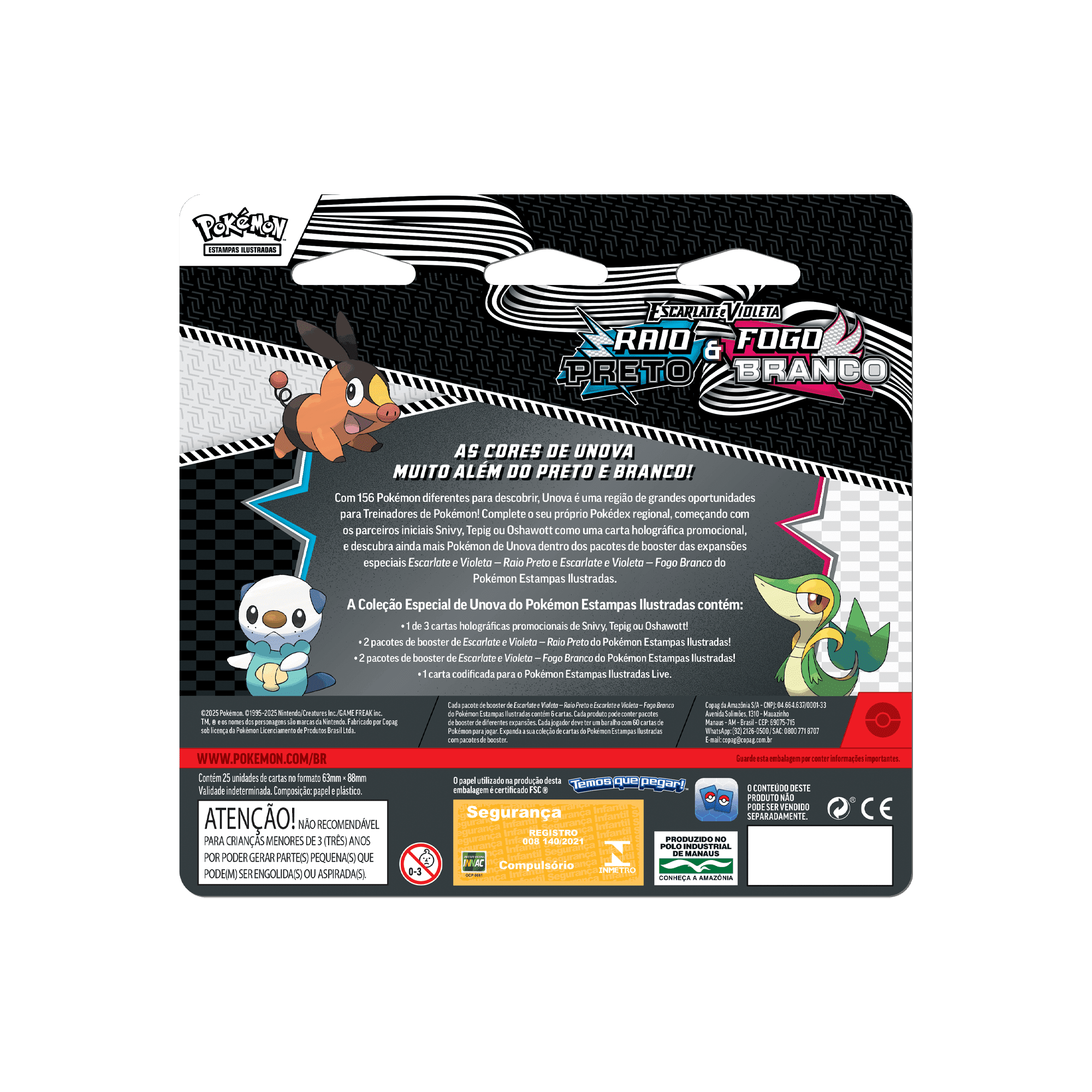 - Pelo menos 4 boosters recheados com cartas das expansões Raio Preto e Fogo Branco do Pokémon TCG Estampas Ilustradas